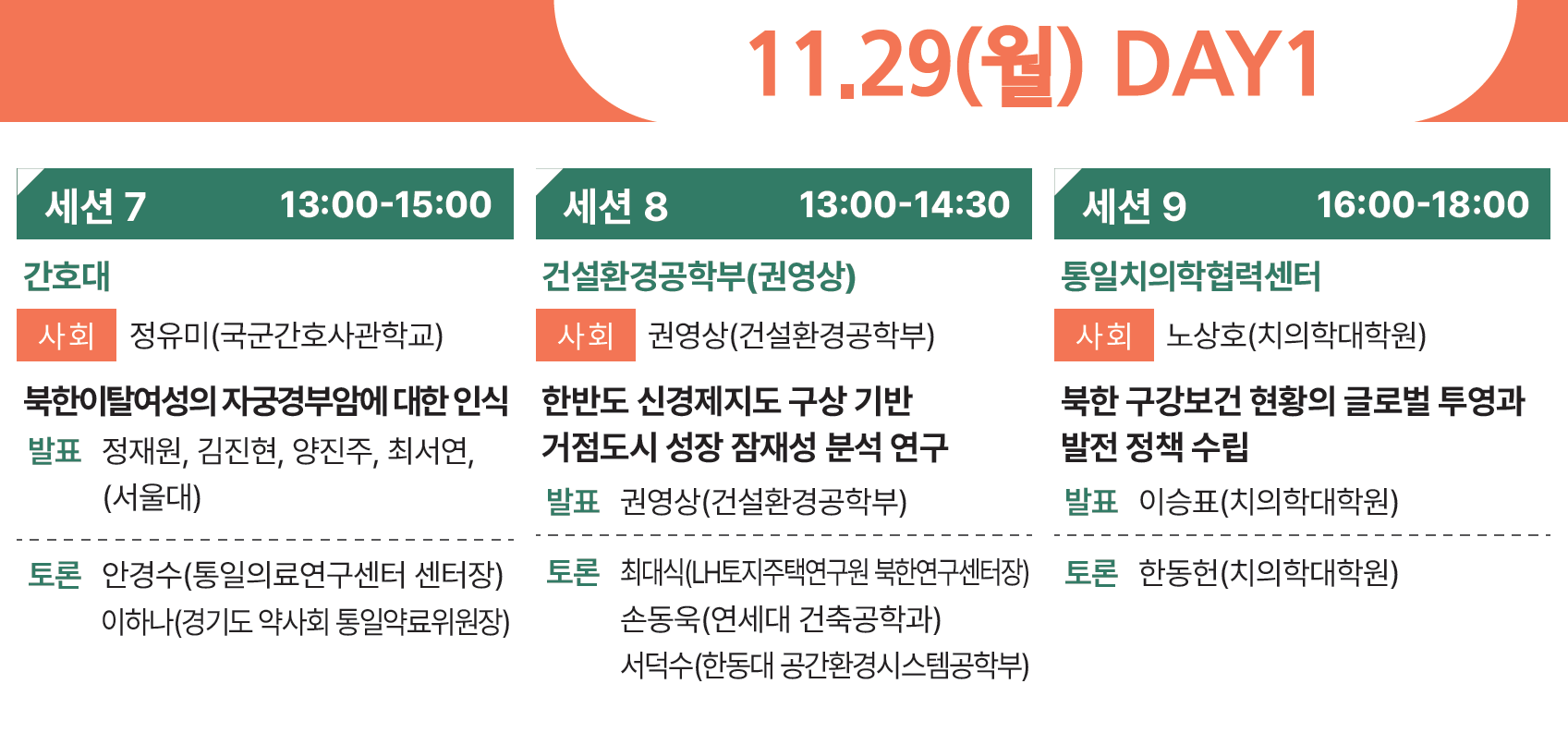 서울대학교 [통일·평화기반구축사업 연합학술대회] 세션7 토론자 참여 글쓴이DPRKHEALTH.ORG2022/03/30게시됨:NOTICE 통일의료연구센터 안경수 센터장이 2021년 11월 29일, 서울대학교 통일평화연구원이 개최한 <통일·평화기반구축사업 연합학술대회>의, 세션7 [북한이탈여성의 자궁경부암에 대한 인식] 발표의 토론자로 참여하였습니다. 뜻깊은 발표에 초대해 주시고 건설적인 논의를 함께 해주신 관계자 선생님 여러분들께 감사드립니다. 이 글 공유하기:TweetTumblr에서 공유 Telegram에 공유하려면 클릭하세요. (새 창에서 열림) Telegram WhatsApp에 공유하려면 클릭하세요. (새 창에서 열림) WhatsApp 클릭하여 친구에게 이메일로 링크 보내기 (새 창에서 열림) 전자우편 인쇄하기 (새 창에서 열림) 인쇄 좋아하기 가져오는 중... 관련